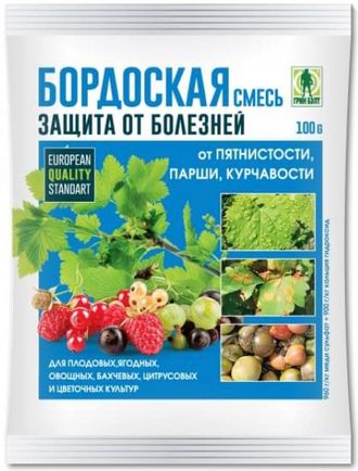 В упаковке содержится пакет с медным купаросом (100гр), и пакет с гашеной известью (200гр.), предназначенные для изготовления бордовской жидкости (фунгицида), которая применяется для борьбы с болезнями растений. Применяется для борьбы с заболеваниями (фитофтороз, коккомикоз, ржавчина, парша, курчавость и т.д.) на различных растениях.